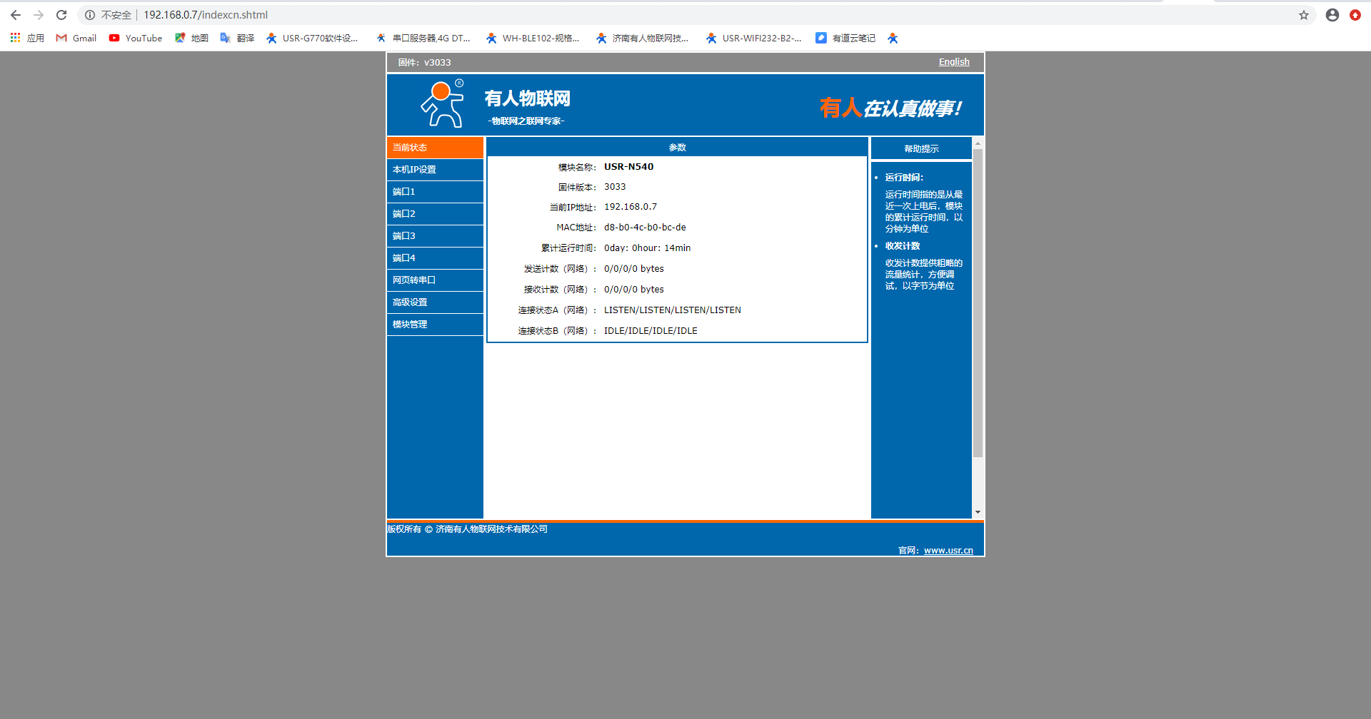 N540说明书:https://www.usr.cn/Download/255.html