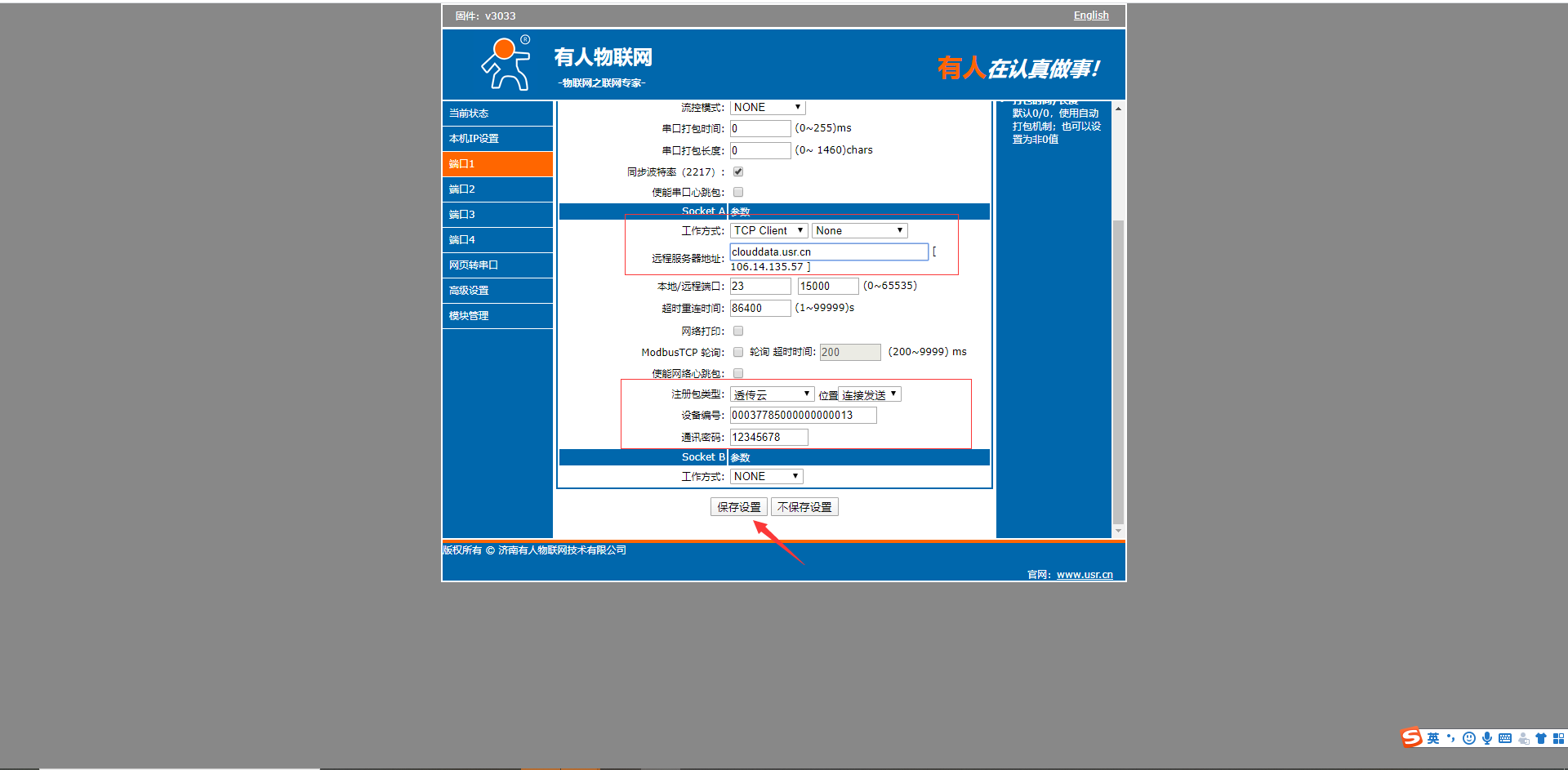 云端参数设置参考 有人设备通过设备ID方法与有人云一对多通讯https://www.usr.cn/Faq/1135.html