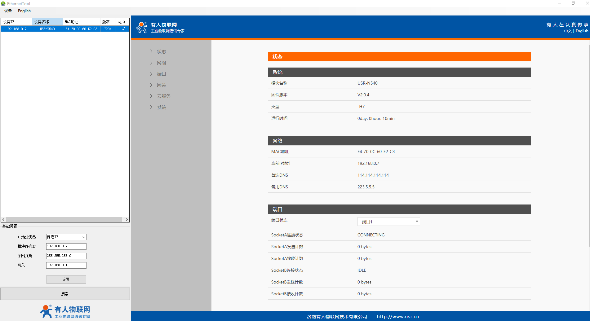 2、USR-N540-H7设置软件https://www.usr.cn/Download/383.html