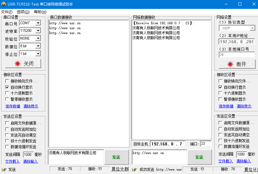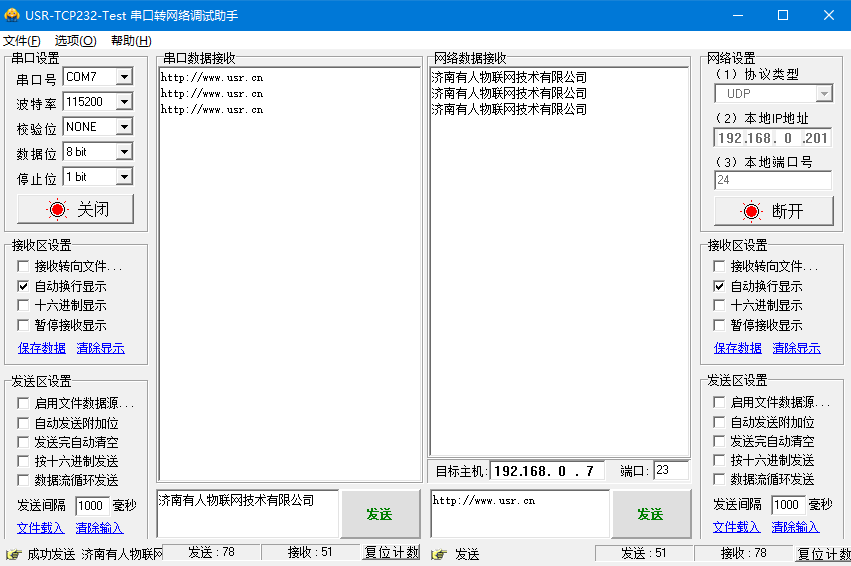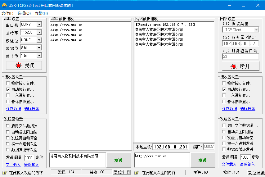 USR-N540-H7 基本测试通讯和使用方案