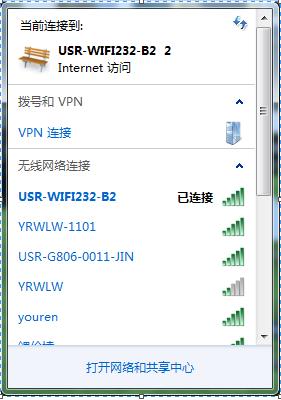 USR-WIFI232-B2出厂默认是Ap模式,电脑无线网卡去搜索USR-WIFI232-B2的wifi。