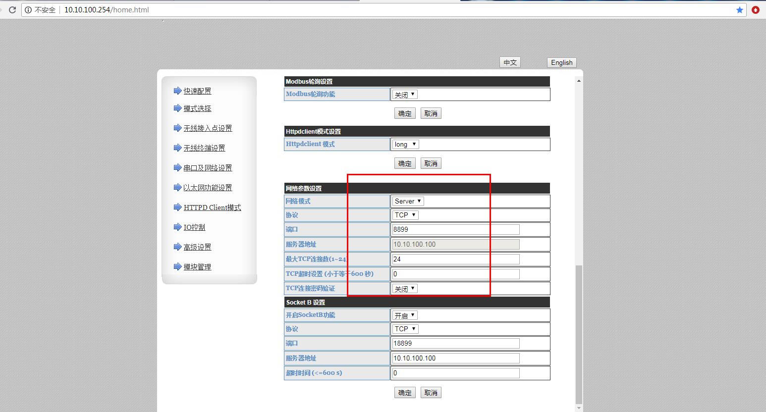 B2模块在网页上,串口及网络设置,设置网络模式TCp server,端口填8899。保存参数,重启B2模块