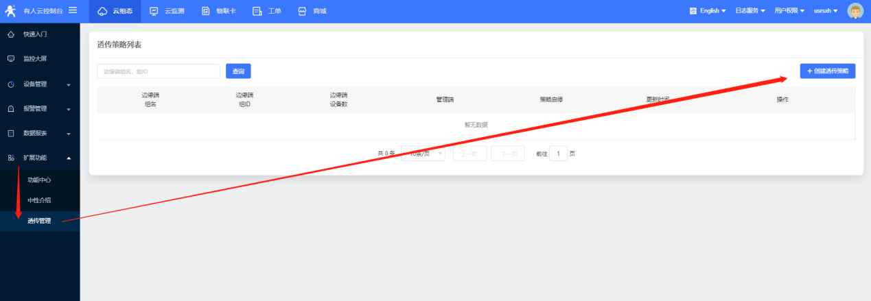 19、创建透传策略