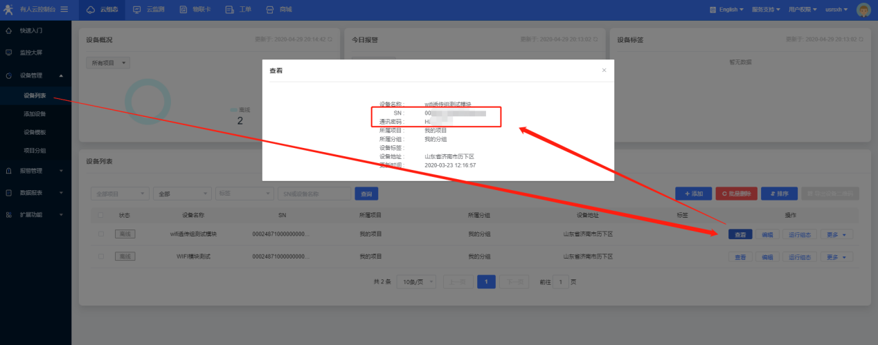 15、设置完所有的参数要重启设备,稍等一会,在有人云界面,您会看到设备已经上线。