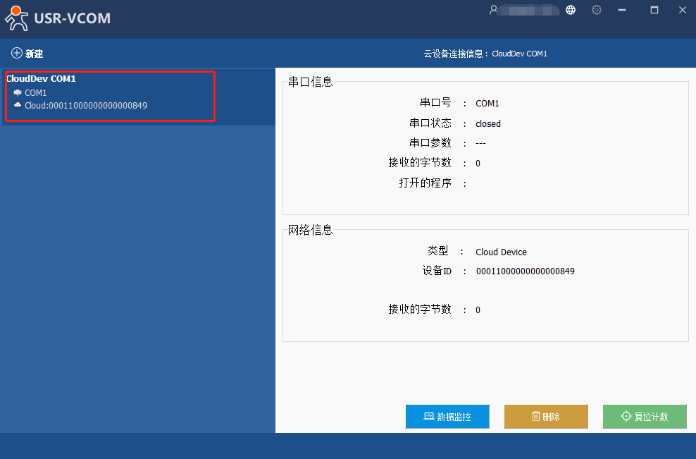 打开虚拟串口软件,点击新建云设备-Vircom连接。在跳出的登录页面登录自己的有人云账号。