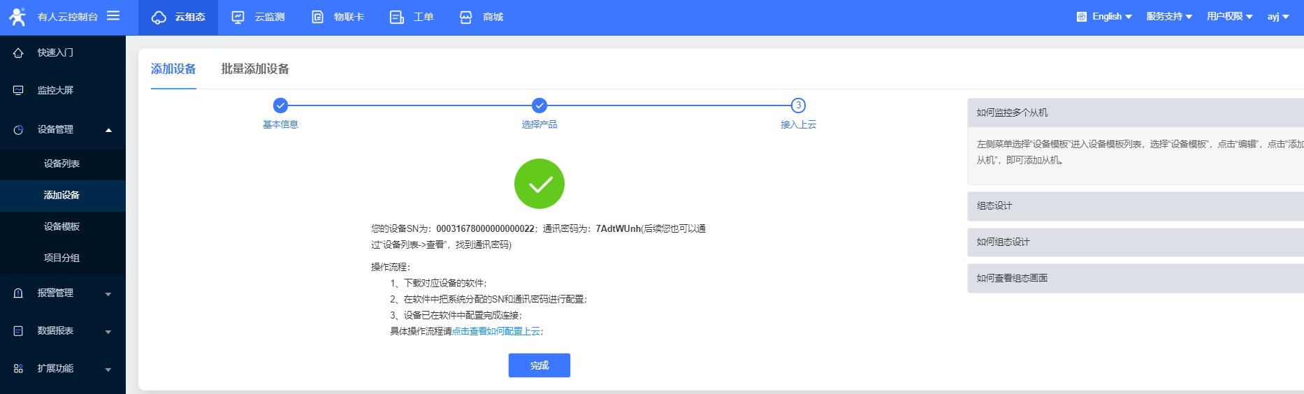 设备编号和密码在有人云设备列表——查看——SN即设备编号