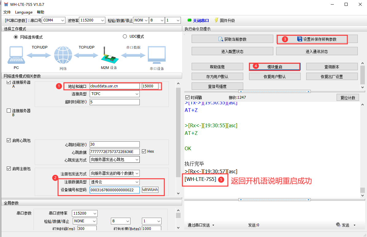 WH-LTE-7S5 连接有人云使用VCOM一对一透传