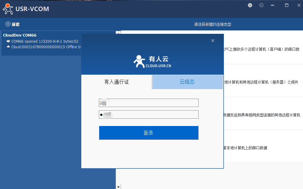 终端串口设备——780V2——有人云平台——PC(VCOM)