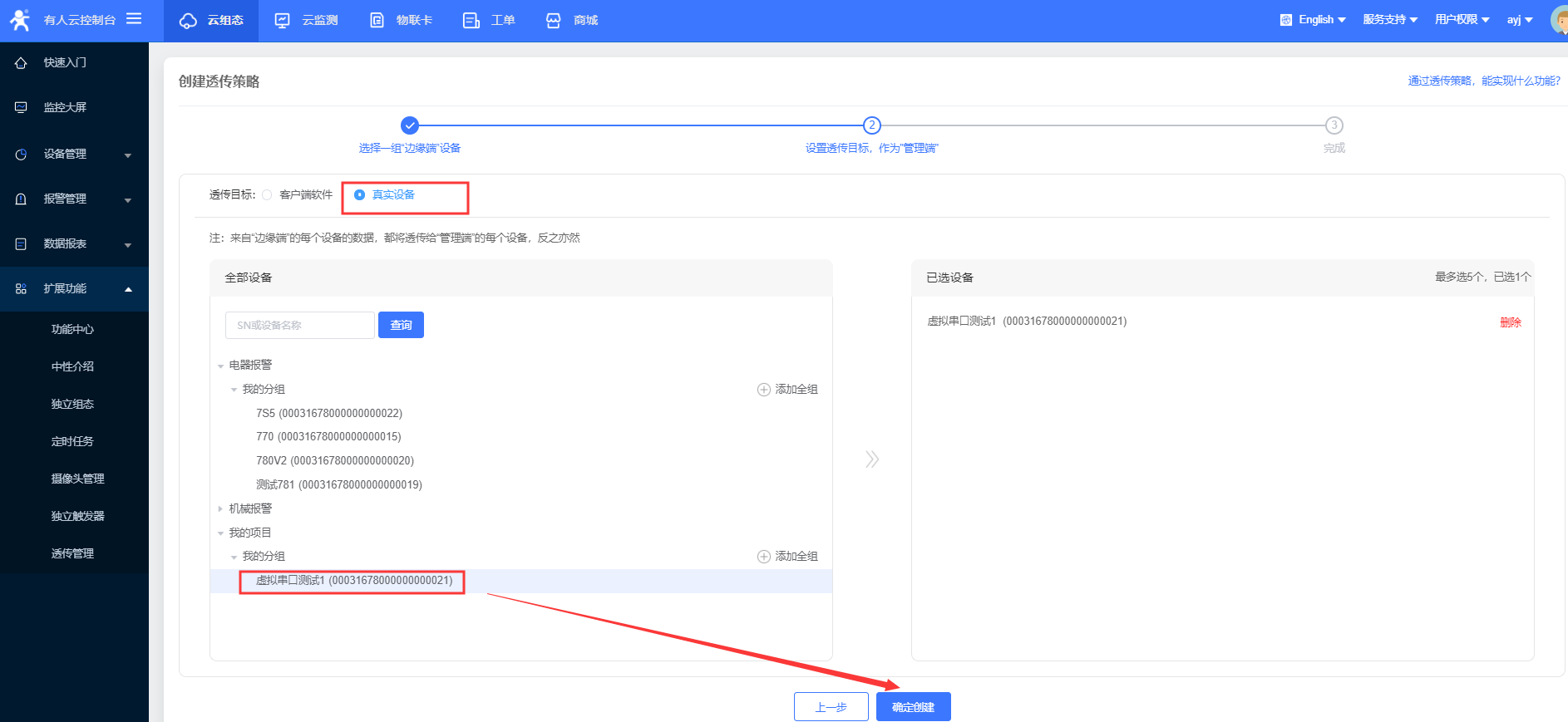 4、创建透传策略