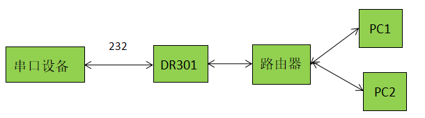 1、将串口服务器DR301(USR-DR301,简称301)的串口通过串口线(或USB 转串口线)与pC相连接,通过网线将301的网口PC的网口相连接,检测硬件连接无错误后,接入我们配送的电源适配器,给301供电。