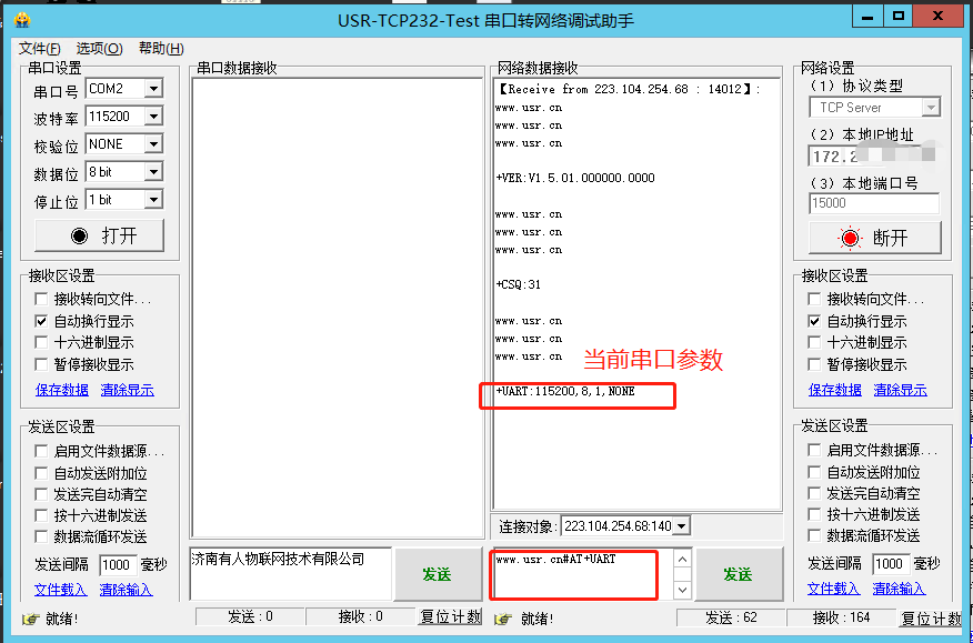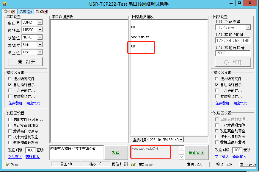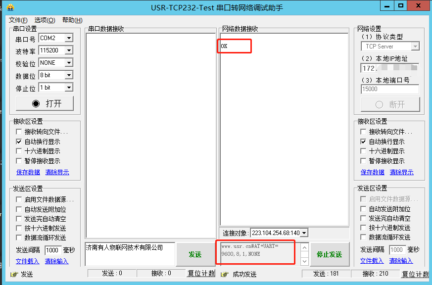 USR-7S5 网络AT指令远程修改参数案例
