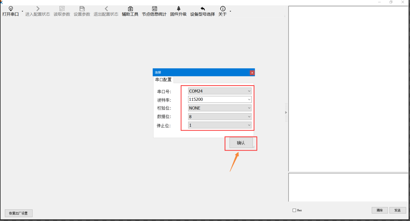 实际应用时,串口设置内的波特率、校验位、数据位、停止需要配置为您206串口要要接的串口设备串口参数,不然数据会是乱码,本次案例为默认参数未修改。 使用485串口线时流控配置为“485”,流控为485时也是可以使用232串口线通信的。