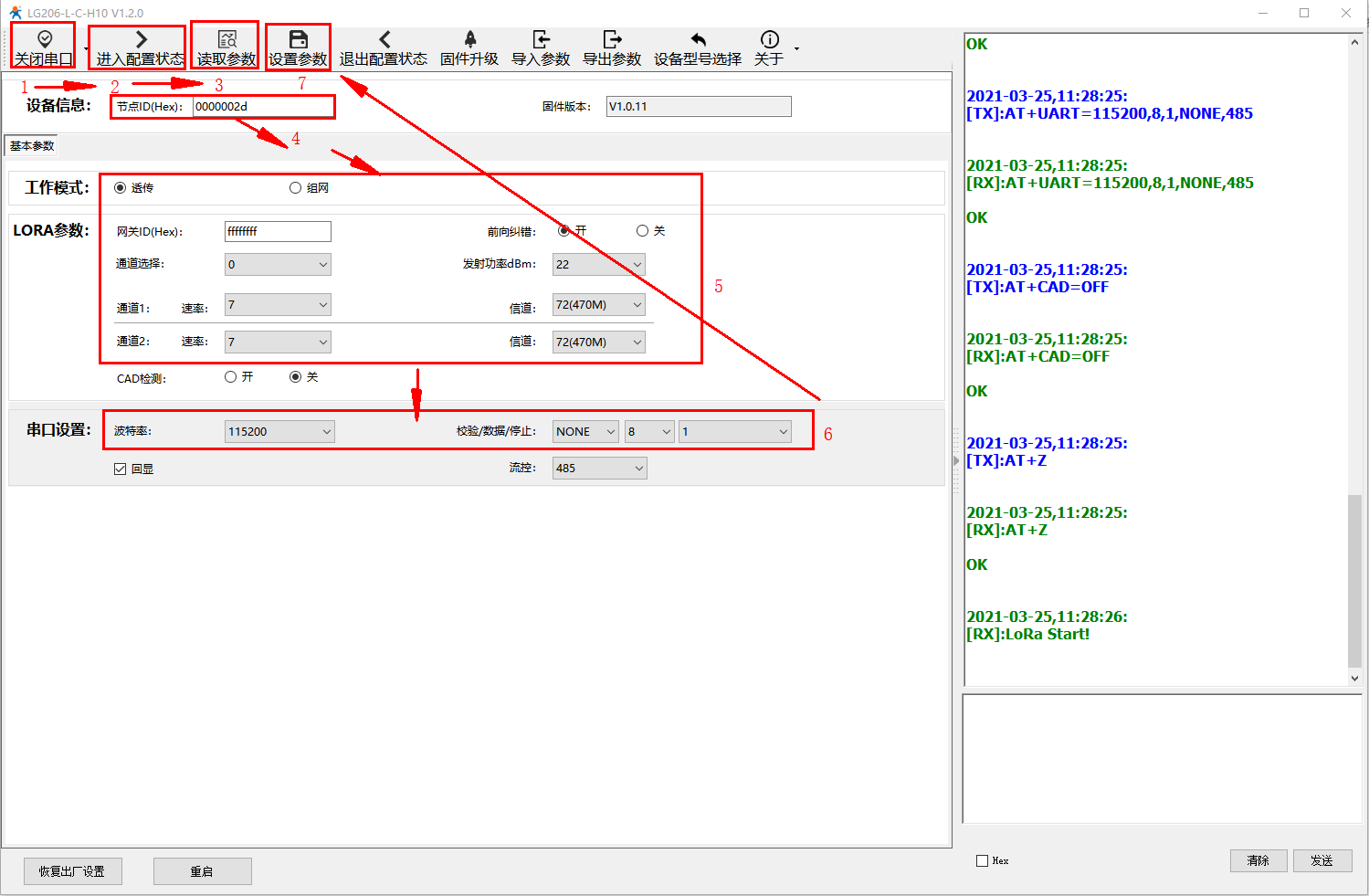 模式配置:“透明传输”,节点ID:“ALL”