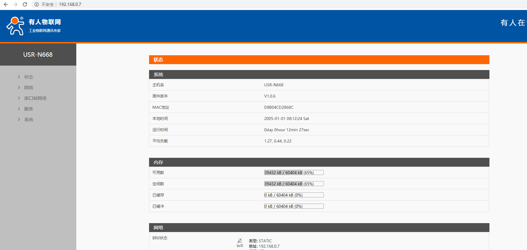 3. 浏览器输入IP:192.168.0.7进入N668的内置网页,用户名密码默认为admin