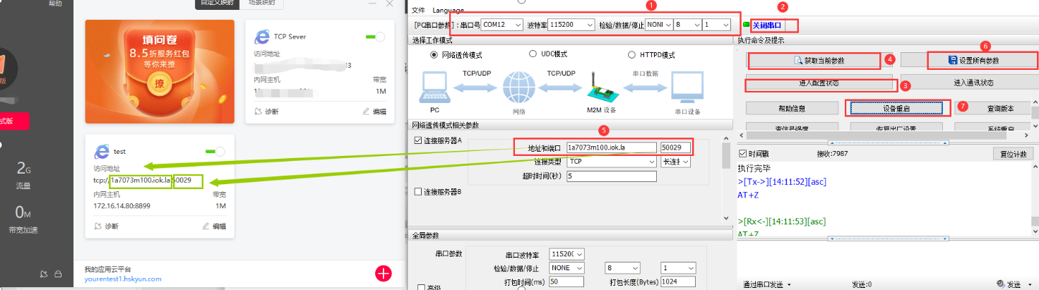 10.使用有人Test调试助手软件测试GPRS DTU串口到网络数据收发情况