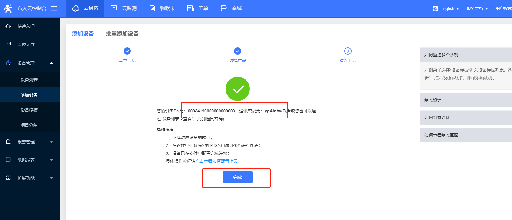 (1)首先在云平台添加设备。