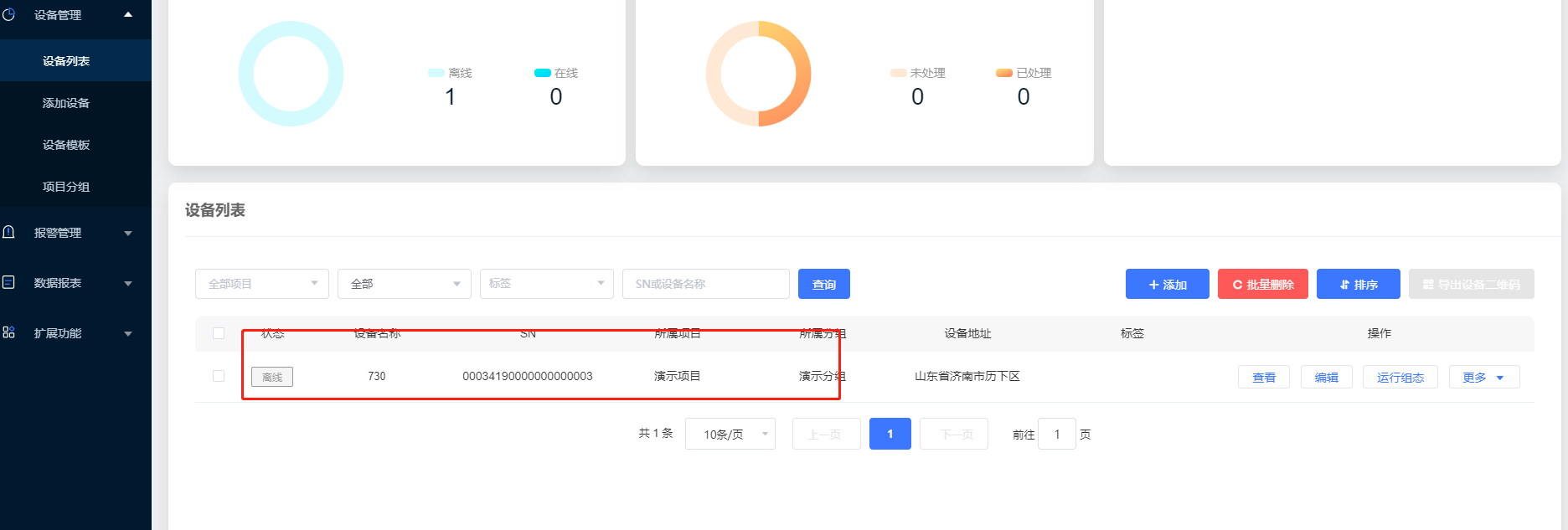 2. 在设备管理,添加设备中添加设备