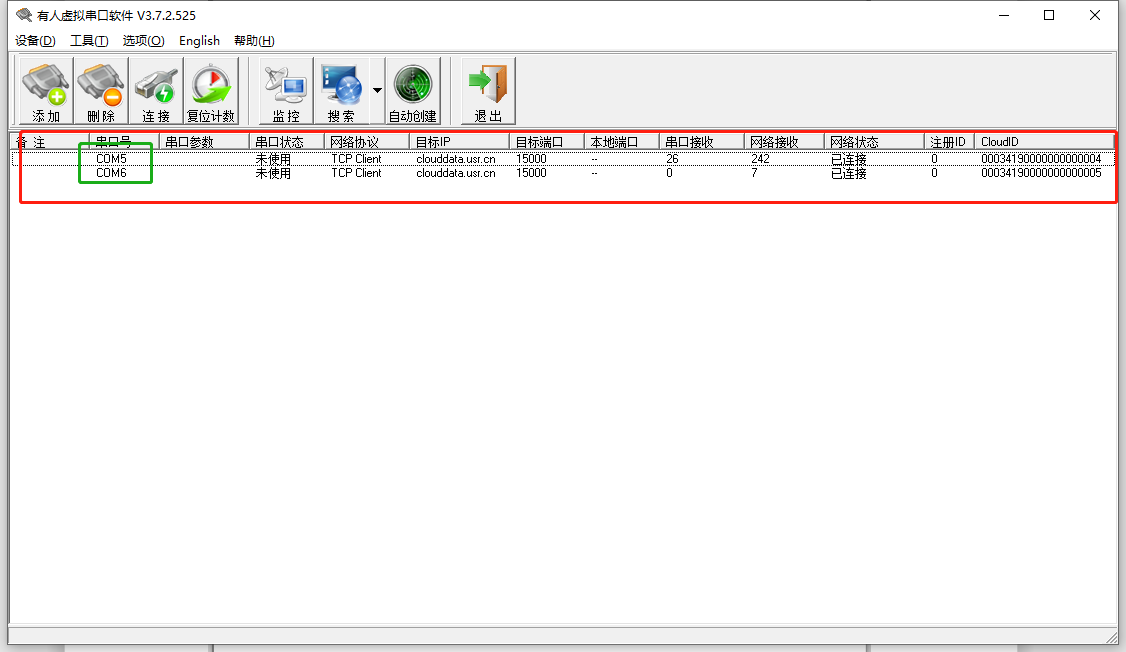10、虚拟串口配置.云端显示在线