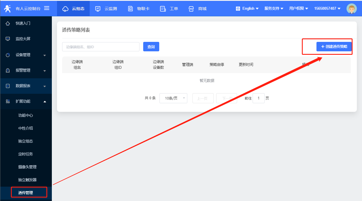 11、建立透传策略