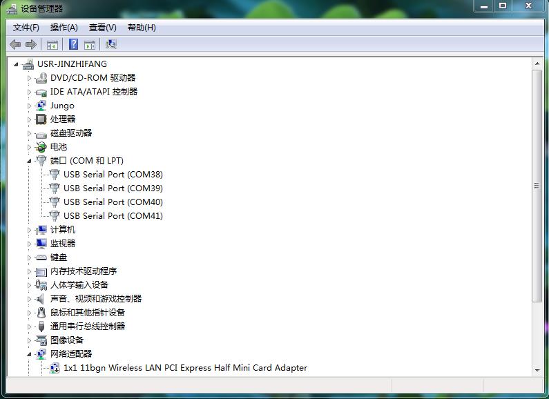 用USB-RS232串口线接电脑和USR-N668的232转接头。右击电脑桌面的计算机,点击设备管理器,点开端口,确认USR-RS232串口线的COM口号。