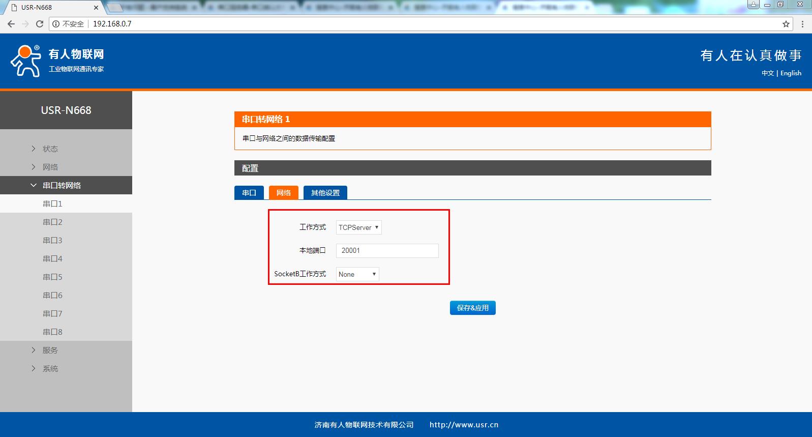 USR-N668 MODBUS网关功能—TCP server