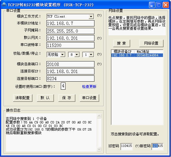 串口转网络模块独立ID功能使用说明