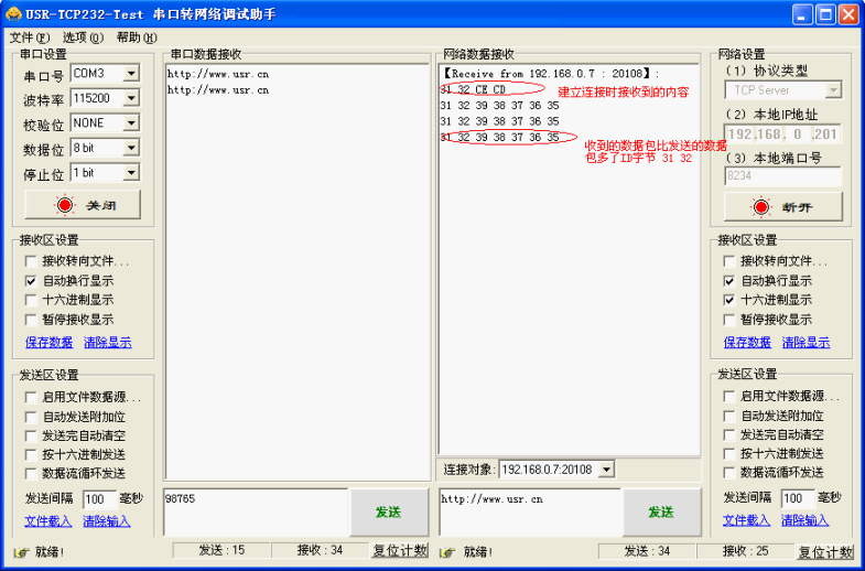 正常收到数据会以地址码开始,后面加数据,数据包长度不能超过400个字节,否则此功能会被打乱。