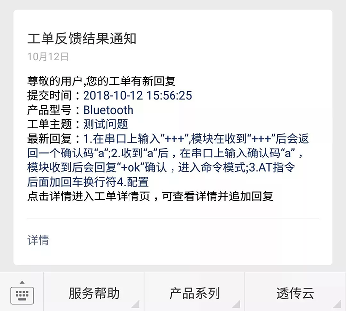 工单反馈结果通过微信消息推送给您。