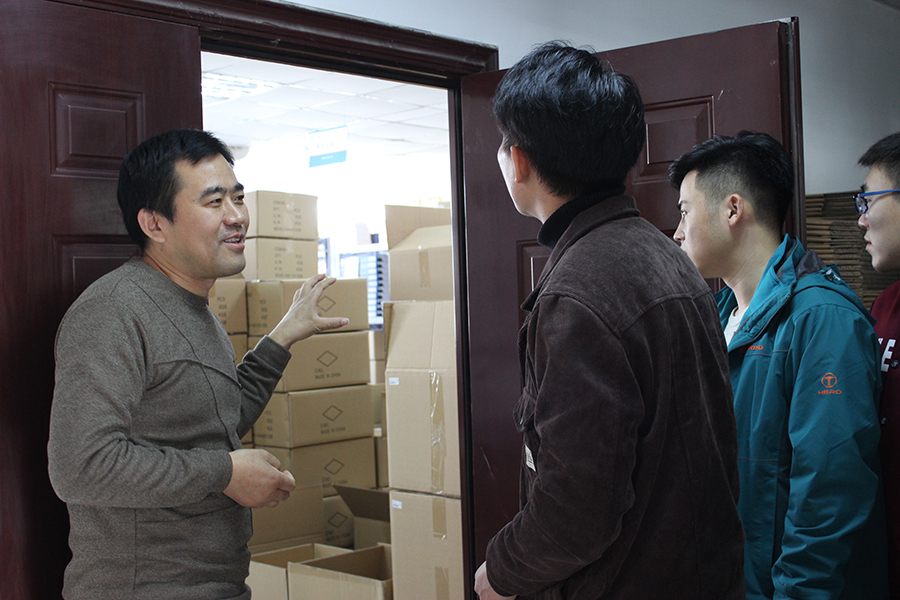 供应链副总房玉军(左一)带领大家参观供应链基地