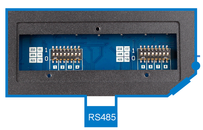 为了减小体积,方便机柜中摆放,节省设备接口空间,做成RJ45封装形式,使用时通过DB9-M 转 RJ45转换器即可实现轻松联网。由于RS232模式使用相对较多,因此出厂默认为RS232模式。如果使用RS485模式或RS422模式可调整对应的拨码开关。