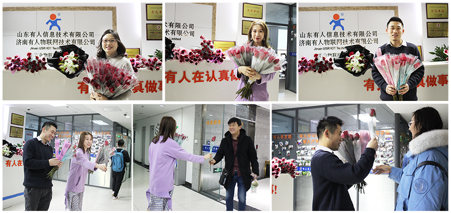 公司总部人力资源部同事,早早地来到公司,为每一名小伙伴派发节日玫瑰。无论女同事还是男同事,每人都会收到一支鲜艳的红玫瑰。