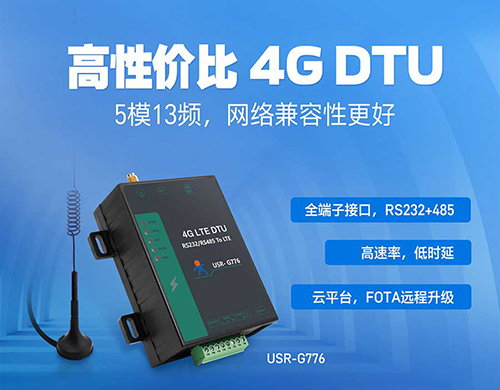 G776同样用于RS232/485与4G网络的数据双向透传——