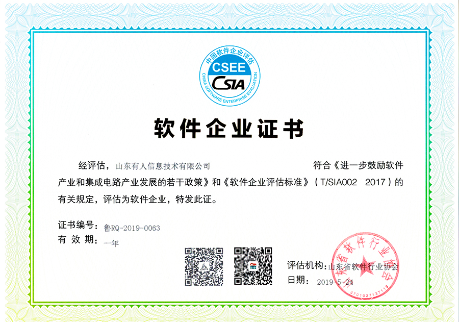 在“山东省2019年第七批软件企业”评估中,有人物联网被山东省软件行业协会认证为软件企业。联想到之前已经获得的软件产品认证,这也意味着,有人正式成为“双软企业”。