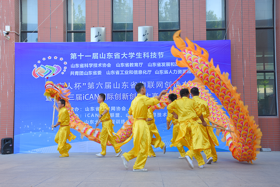 伴随着舞龙舞狮表演团的一系列精彩表演,本次大赛正式拉开帷幕。山大创新创业学院院长顾问陈言俊教授,山东省科协学会服务中心主任刘利印,山东省物联网协会副会长、山东铁塔副总经理魏波,有人物联网创始人兼CEO古欣,受邀上台致辞。