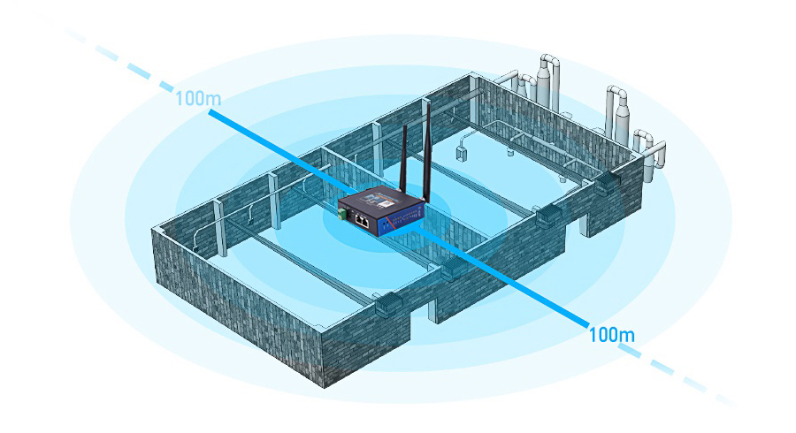 有人4G工业路由器全部采用5dbi全频棒状天线,WIFI采用3dbi高增益天线,强劲信号可达100米,实测可达到更远的距离。