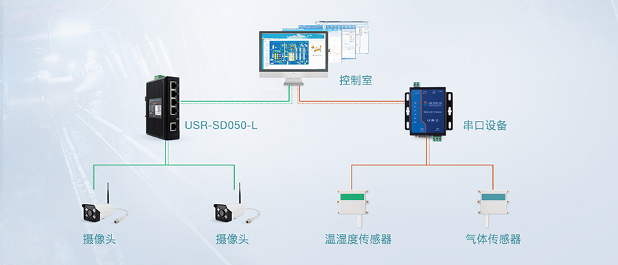 例如煤矿项目上,工业自动化监控的案例:煤矿瓦斯监控场景下,工作人员通过“交换机+串口服务器+终端串口设备”的组合,构建起一整套的组网监控方案,最大化地联多台传感设备,为井下人员的工作安全保驾护航。