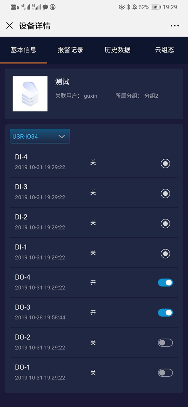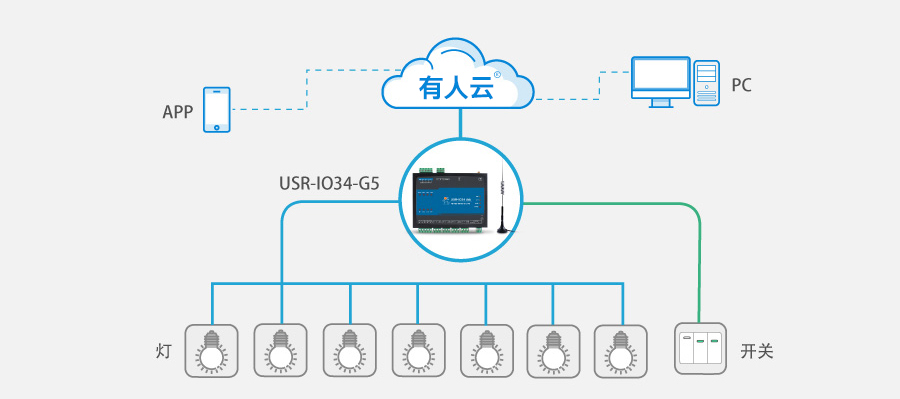 网络IO支持连接有人云使用,借助云组态功能,无需编程,简单易用,方便用户任意修改和演示应用场景效果;支持手机端远程控制,为用户提供更多便利。