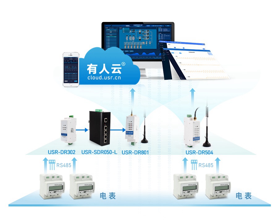 实现功能:电能表数据的远程采集和联网传输,配合有人云实现对能源的云端智能管控。