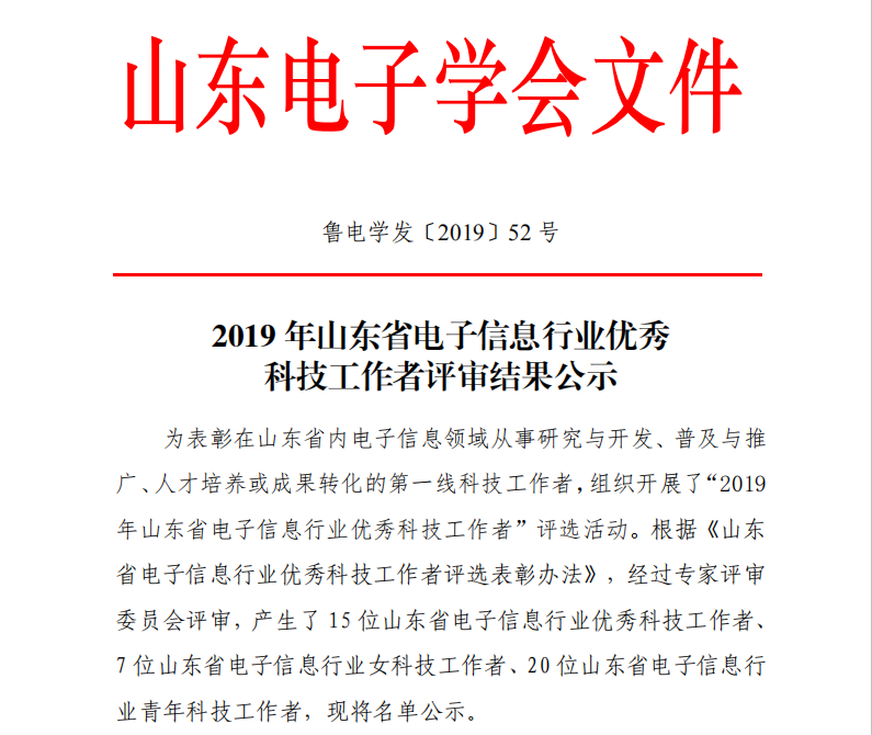 据悉,上述奖项是为表彰企业或个人,在山东省内电子信息领域从事研究与开发、普及与推广、人才培养或成果转化等工作而组织开展的评选活动。