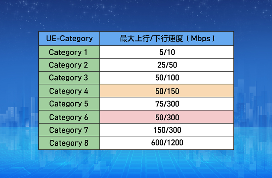 Cat就是UE-Category,UE是用户设备(User Equipment),Category是分类,而Cat-X的值被用来衡量用户终端设备的无线性能,通俗讲,就是用来划分终端速率(等级)的。