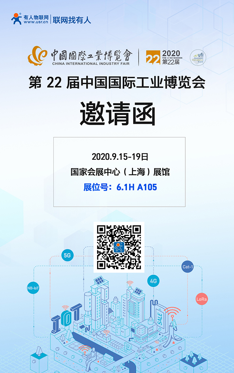 9月15日-19日,2020第22届中国国际工业博览会将在国家会展中心(上海)举办,有人物联网在6.1H A105展位,诚邀您前来参加。