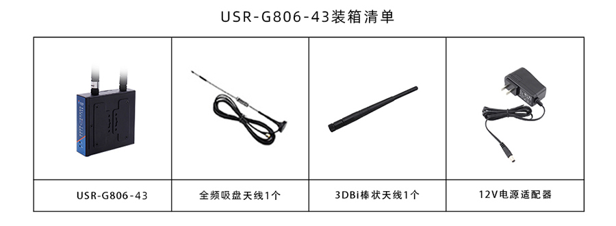 4G工业路由器G806搭配4G天线和wifi天线,以及12V电源一个。拿到4g工业路由器时,只需将两个天线安装到对应的位置上,连接电源,插上网线和流量卡,即可实现联网。