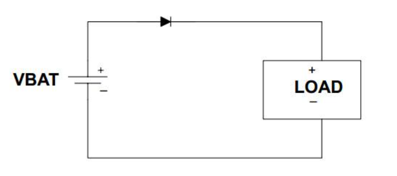 实现此目的的最简单方法是,当电源正极连接时,电源通过二极管正向电压向负载提供电压。当电源反向时,由于二极管的单向传导和反向截止,将不为后端负载供电,这起到了保护作用。该电路具有缺点。首先,正向电压降很大。普通二极管的压降约为0.7V,肖特基二极管的导通压降为0.3V,价格相对昂贵。其次,当负载电流大时,二极管端的功耗相对较大。