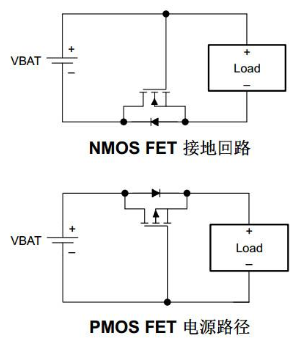 NMOS将破坏接地回路,如果对接地回路敏感,则应将PMOS用于反向连接。在实际电路中,需要通过串联电阻来保护MOS栅极。