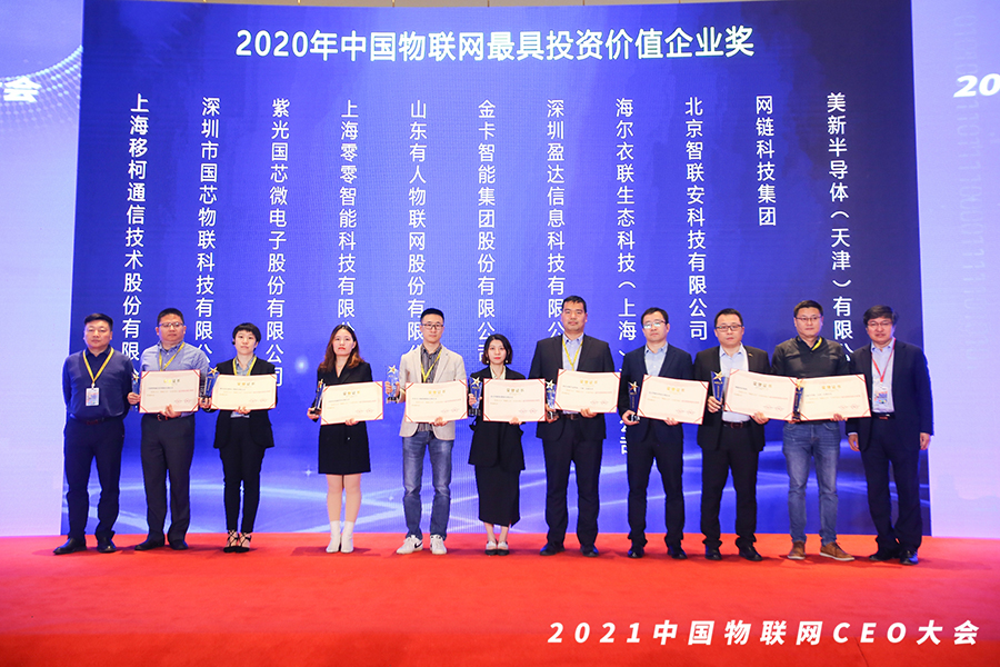 4月20日,由深圳市南山区工业和信息化局、深圳市物联网产业协会、深圳市物联传媒有限公司联合主办的2021中国物联网CEO大会暨“物联之星”颁奖盛典在上海举行。