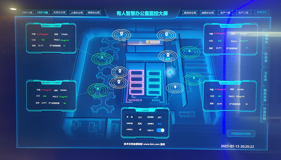 以我们的办公室为例,将我们两层楼的办公环境以及有5个分公司,现在通过物联网技术把这些物联网办公环境管理起来。