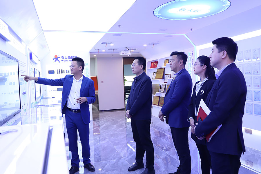 众领导在董事长古欣的陪同下参观了企业展厅,听取了关于有人物联网企业发展情况的介绍,并了解了有人物联网多项创新产品研发成果。