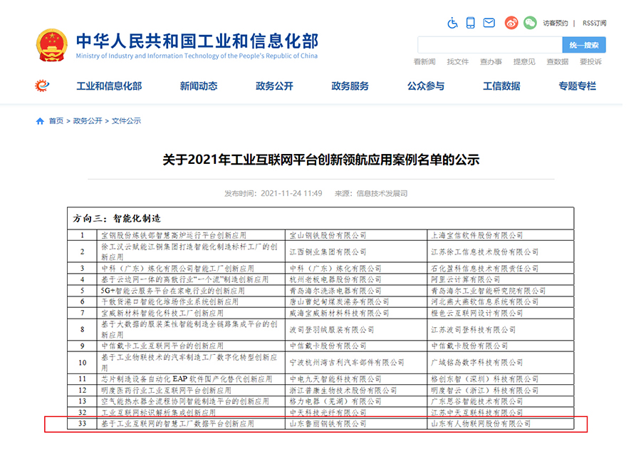 喜讯!有人物联网入选工信部2021年工业互联网平台创新领航应用案例名单