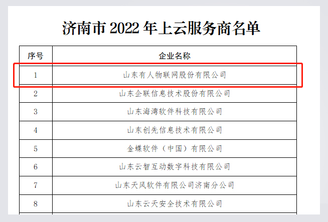3月11日,济南市工业和信息化局公示《济南市2022年上云服务商名单》。经公开征集及各地区推荐、专家评审,有人物联网获评济南市2022年上云服务商。