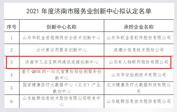 3月18日,济南市发展和改革委员会公示《2021年度济南市服务业创新中心拟认定名单》。经前期区县推荐、专家评审等程序,有人物联网获评济南市服务业创新中心。